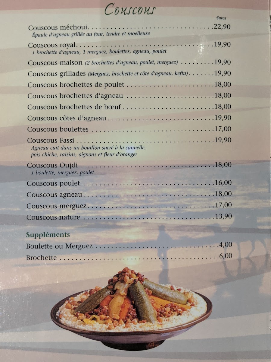 Hello, to follow up on the reviews already posted, I would like to tell you that I have known this restaurant forever and it has been one of the best couscous in the area, the boss is very nice. The servers are very nice too. Everything is going very well. The quantities are very very good. We are offered several weights of semolina and several times of broth so we can have more and the meat is very good. Michoui is very good, everything is perfect. I always go back there with my family, so I really recommend it after the reviews that I have seen. These are people who are not used to eating couscous, I think, and I can tell you that I have always been eating couscous. I hope you will express this opinion and take it into account. Kind regards. Mr Dim