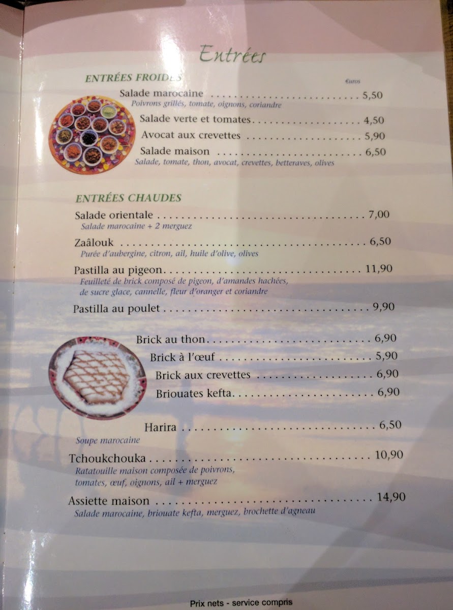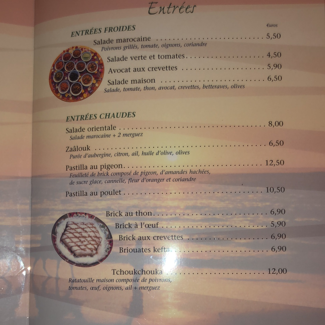 Perfect. A delicious dried fruit tagine. Cozy atmosphere. The server is very friendly and professional.